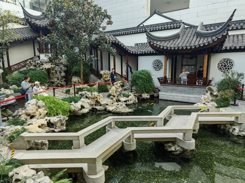 如今高速公路桥和高铁的高架桥也在卢沟桥旁不远处飞跨过河,有八百多年历史的卢沟桥现在可以安详地微笑,桥上的石狮和桥面上深深的车辙仿佛在静静聆听着旁边汽车和高铁的飞驰。曾经一度干涸的永定河谷如今重新得到远道而来的南水的滋养,永定河西畔早已建成了总占地513公顷,集园林艺术、文化景观、生态休闲、科普教育于一体的大型公益性公园。抚昔追今令人无限感怀。大家漫步在美丽的永定河畔,沿着西岸继续向北来到中国园林博物馆。
