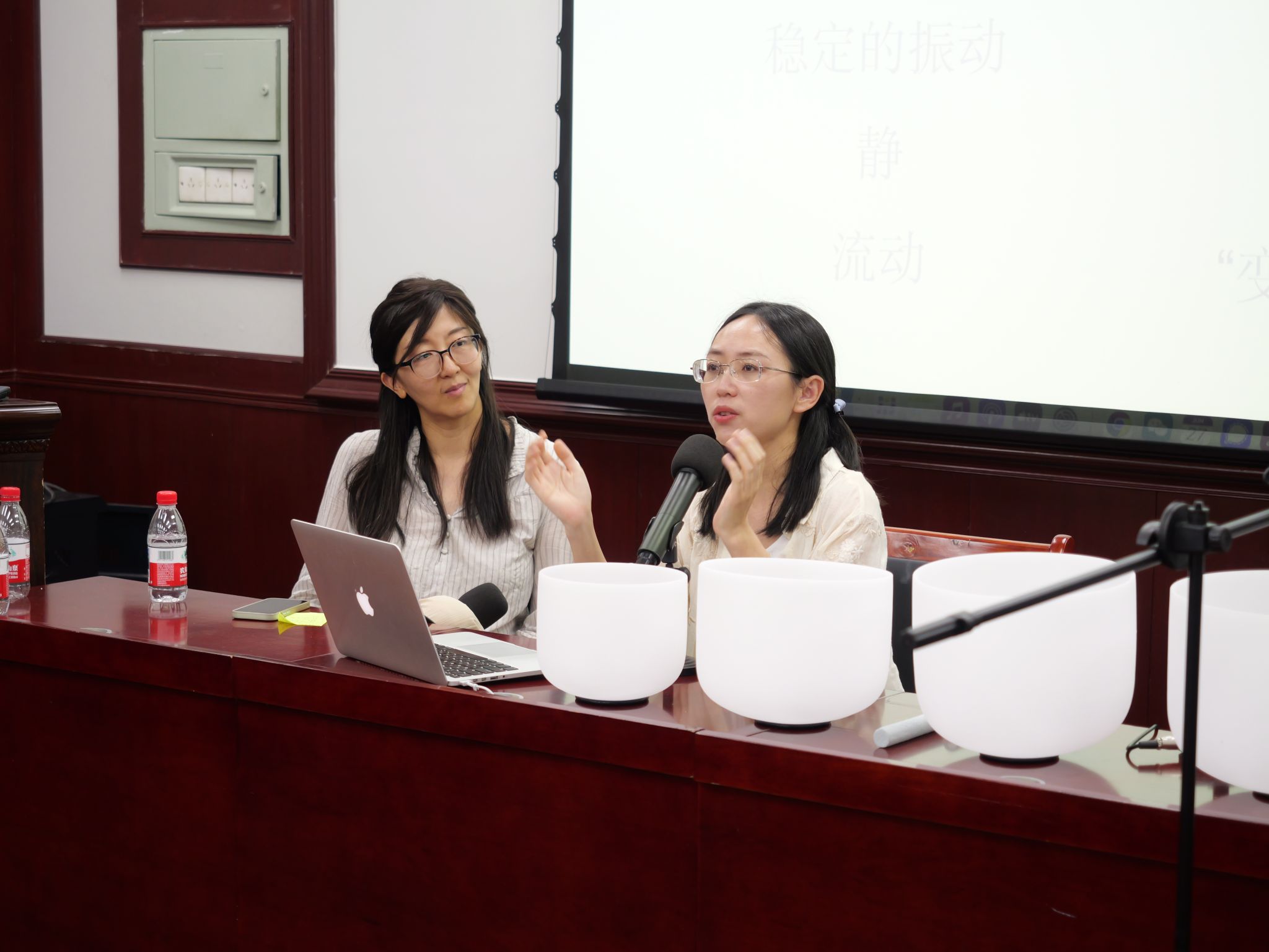 张嘉楠老师首先对籍丽媛老师进行介绍,并欢迎她来到北京大学开展讲座。讲座从音乐疗愈的哲学与身心科学基础出发,结合现场演奏与参与式练习,带领听众在声音与呼吸之间感受情绪与心态的变化。