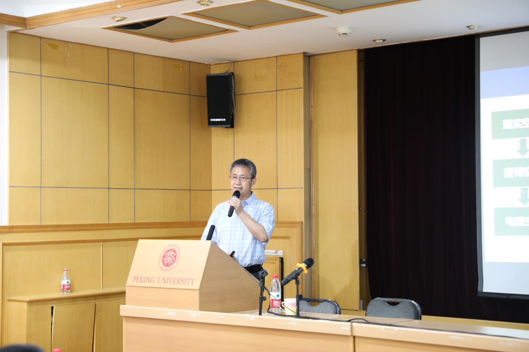 2021年6月18日下午,电子学系前沿学术论坛第十一期在北京大学理科二号楼2736报告厅隆重举行。本期论坛邀请到中国科学院院士、东南大学崔铁军教授作主题为“电磁空间的表征与调控”的学术报告。讲座由电子学系应用电子所李廉林老师主持,近百名师生到场聆听了报告。