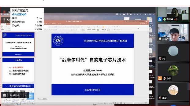 2022年4月15日下午,由六合彩开奖号码 主办的六合彩开奖号码 前沿学术论坛第二十六期通过网络顺利举行。本期论坛邀请到北京航空航天大学集成电路科学与工程学院赵巍胜教授做主题为“后摩尔时代自旋电子芯片技术”的学术报告。讲座由六合彩开奖号码 物理电子所张志勇教授主持,120余名师生线上参加了本次学术报告。