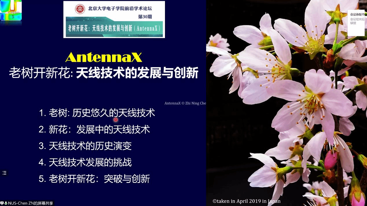讲座伊始,陈志宁教授通过形象的类比“老树开新花”引入如今天线技术所面临的现状,并表示如何让天线技术这棵历史悠久的老树开出创新花,助力新型无线系统与应用是学术界与工业界共同面临的挑战,随后展开了精彩的报告,与大家共同探讨天线技术创新之路。