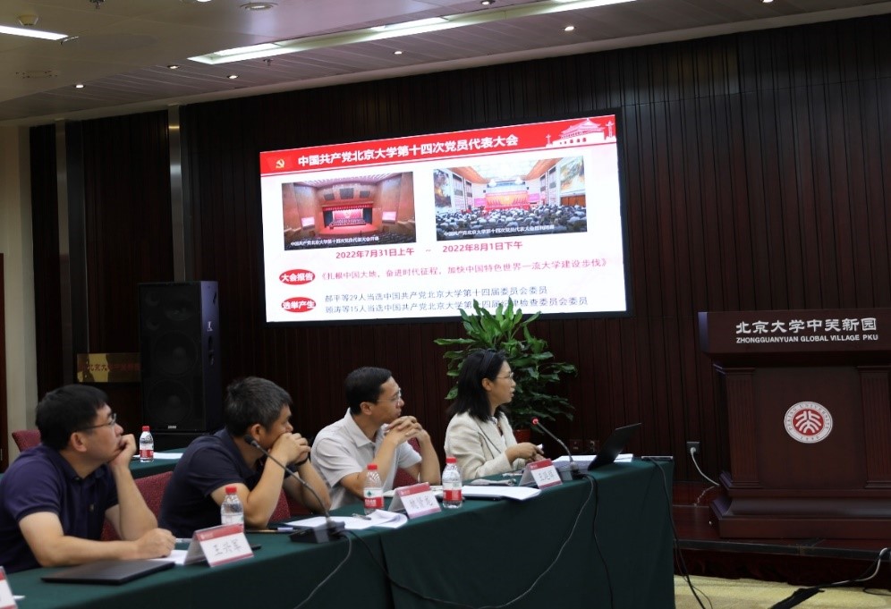 学院党委书记冯梅萍老师传达了中国共产党北京大学第十四次党员代表大会精神,带领与会人员学习了蔡奇书记在党代会的讲话精神、郝平书记所作的大会报告精神,指出大家要认真体会蔡奇书记讲话中对北京大学及全体师生的勉励与厚望,要立足“两个大局”,心怀“国之大者”,持续推进“双一流”建设,努力在中国特色、世界一流大学建设上立标杆、作表率;共同学习了郝平书记大会报告中关于过去五年持续奋斗历程与突出成绩、以及关于新时代下的新形势新机遇和新挑战的阐述,分析了围绕新工科建设和电子信息学科的重要工作和突出成绩,号召大家要通过专题网站和多种学习媒体,深入学习积极领会党代会精神,响应党代会号召,以永不懈怠的精神状态和一往无前的奋斗姿态,奋力实现学校第十四次党代会确定的目标任务,以更加优异的成绩迎接党的二十大胜利召开。