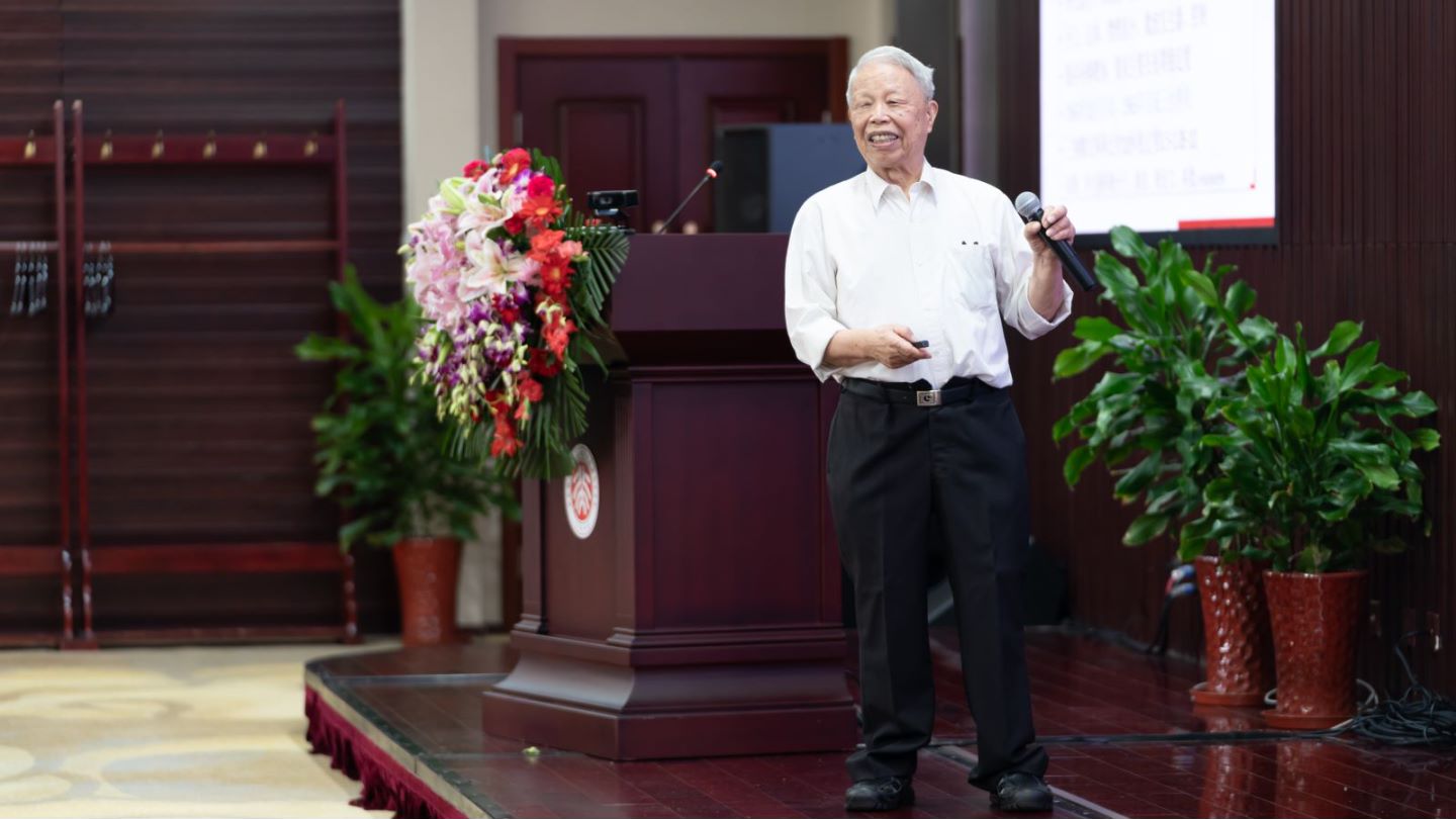 王义遒以“我的科研生涯一瞥”为题带领大家回顾了其科研生涯,并分享了他在科研道路上的人生感悟。他从国外学习超高频电子学、核磁共振的经历讲起,到归国后研究方向的选择,再到开展原子频标、冷原子基础研究,并获“全国科学大会奖”等,将他的科研经历娓娓道来。“我们要真正成为世界科技强国,一定要在基础研究方面不断地精益求精。”“原子钟是关键核心技术,一定要掌握在我们国家自己手里。”他的发言深深地打动着在场的每一个人,先生为科研不懈奋斗、紧跟国家和时代的命运,生动地展示了“北大电子人立足基础研究、为国家服务的初心和使命”。王义遒引用“路漫漫其修远兮,吾将上下而求索”与大家共勉。