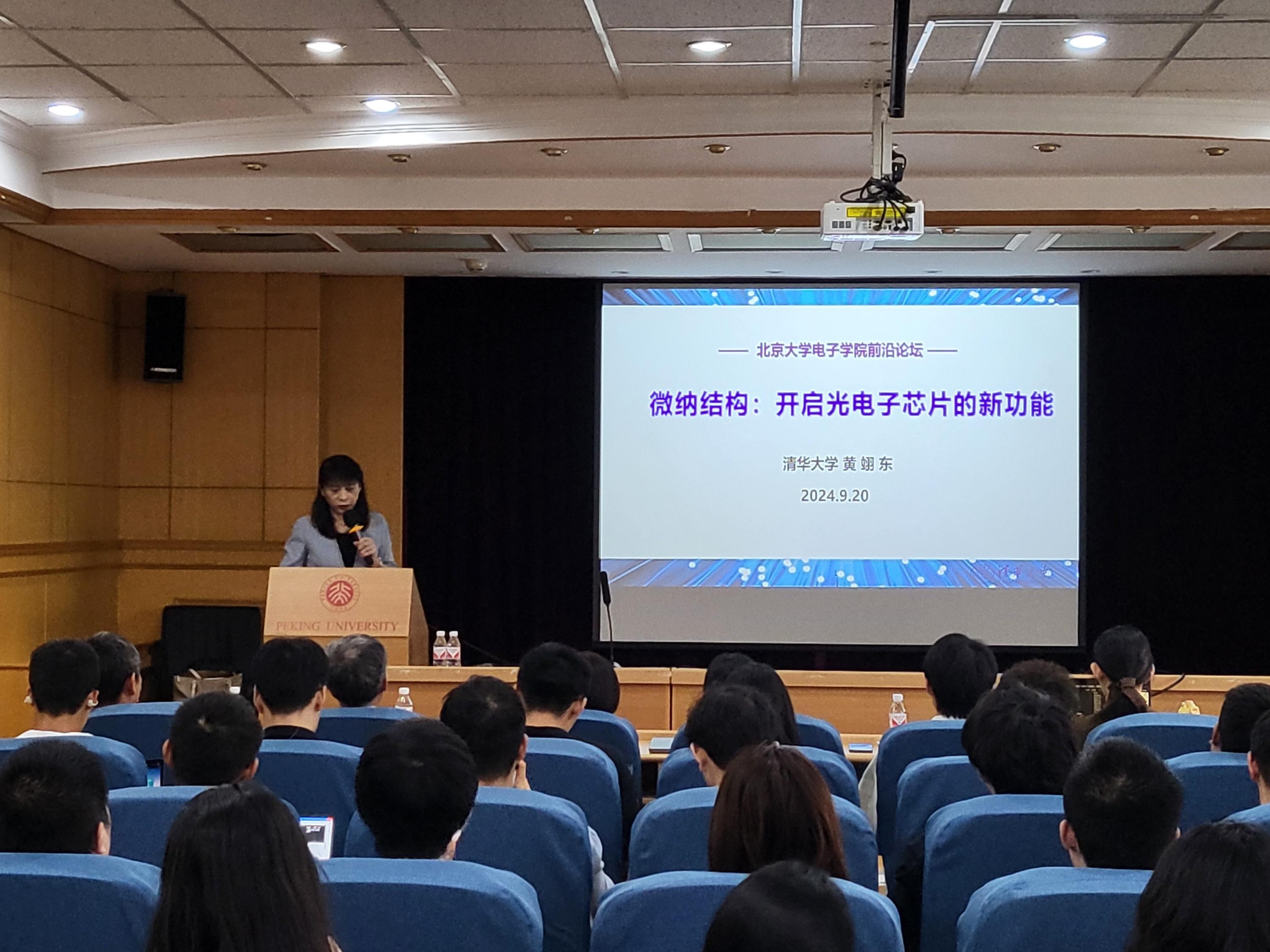 讲座开始,黄翊东教授从光电子芯片和电子芯片的不同入手,着重讲解了光电子芯片功能实现的物理机制,带领大家深入微观世界,探索微纳结构中新的物理机制和特性,能为光电子芯片提供新的发展可能性,为打破“无芯”困境提供了全新的发展机遇。