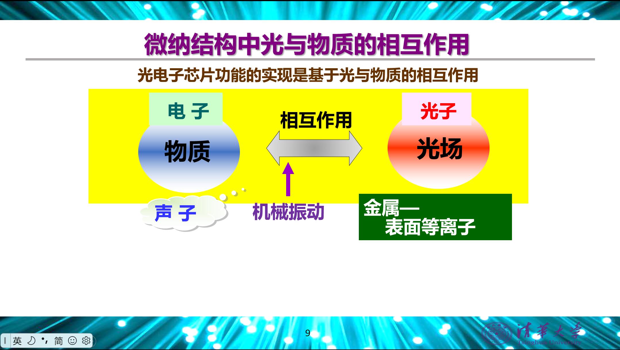 然后,黄教授提出光电子芯片的功能依赖于光与物质的相互作用,核心在于调控基本粒子、准粒子和激元等的能量与动量关系(即“广义能带”)。在微纳尺度下通过精确调控物质结构及其与光子、表面等离激元、声子的相互作用,可以通过新结构产生新激励,实现新功能。