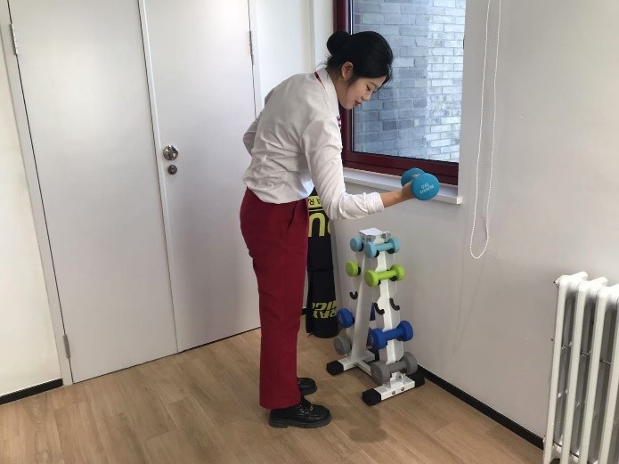 教工之家还准备了瑜伽运动垫、一套哑铃和泡沫轴。瑜伽垫选择了高质量大尺寸的,有防滑和降噪作用,加上铸铁的哑铃和泡沫轴,便于开展简单的力量练习和拉伸按摩活动,实用且耐用。