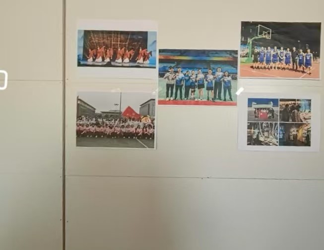 展示柜的背面为照片展示区,用于展示老师们最近参加的工会活动照片。