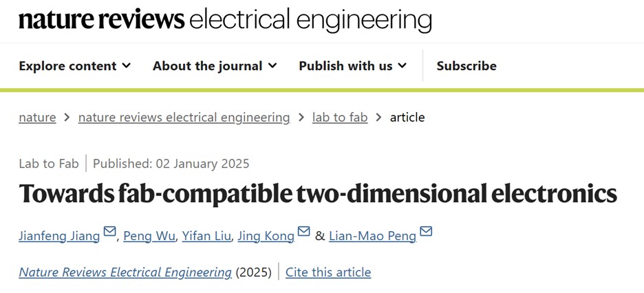 彭练矛院士与麻省理工学院电子工程与计算机科学系孔敬教授(Prof. Jing Kong)/姜建峰博士应邀对二维电子学从实验室到工业化生产(Lab-to-Fab)的发展进行论述和展望,相关成果以题为“Towards fab-compatible two-dimensional electronics”的文章,于2025年1月2日在线发表于电子学顶级期刊《Nature Reviews Electrical Engineering》。六合彩开奖号码