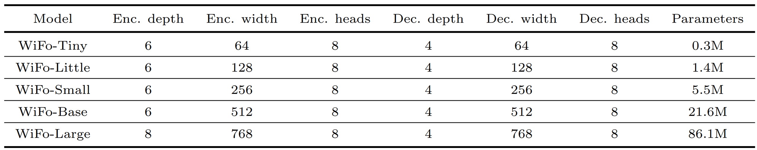 打破分立设计的瓶颈,WiFo首次将时域和频域的MIMO-OFDM信道预测统一建模为信道重建任务。为解决信道预测任务和CSI数据的异构性,提出了一种基于掩码自编码器(MAE)的网络架构,从而可以处理任意尺寸的三维CSI数据并应用于异构的信道预测任务。同时,设计了一种新的空时频位置编码结构,以学习CSI样本的三维位置信息。为充分捕获通用的信道空时频特征,设计了三种自监督预训练任务,即随机掩码重建,时域掩码重建和频域掩码重建。预训练后的WiFo可直接零样本用于信道预测任务,而无需额外训练。