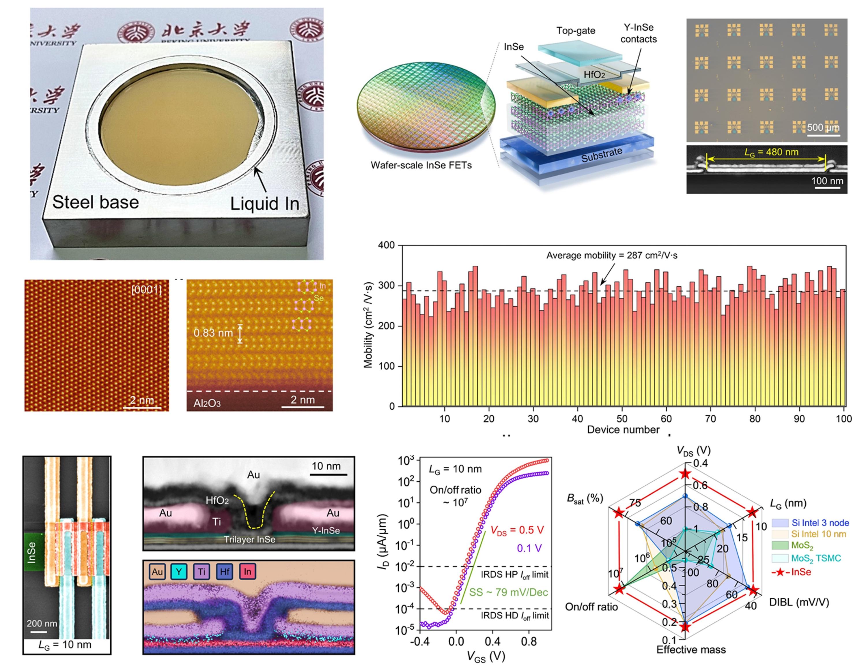 二维硒化铟晶圆集成晶体管结构与电学特性