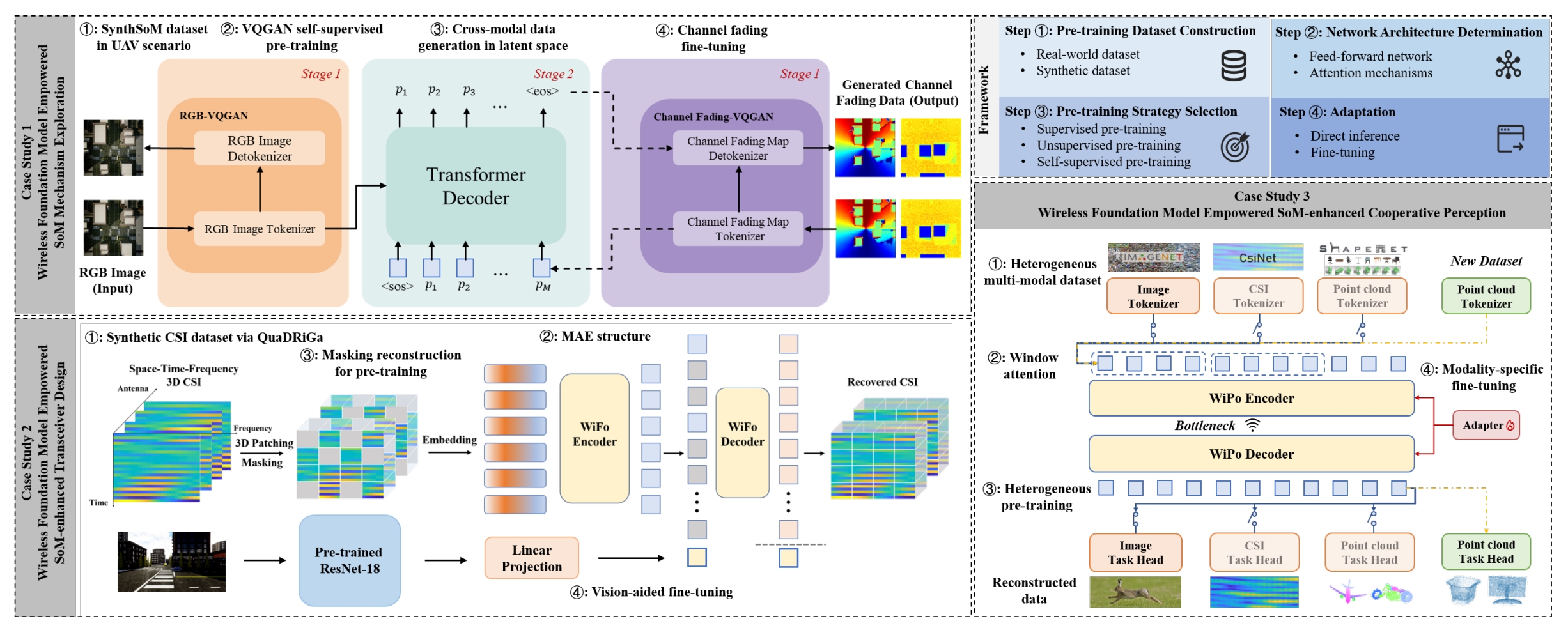(3)针对基于无线基座模型的机器联觉系统设计范式,首次提出了面向联觉机理挖掘的无线信道基座模型(WiCo),首个无线基座模型(WiFo)赋能的联觉收发机方案,和首个基于联觉特征高效传输的无线协同感知基座模型(WiPo),实验验证了无线基座模型在联觉系统设计中强大的数据生成能力、通用表征提取能力和一模多用能力。