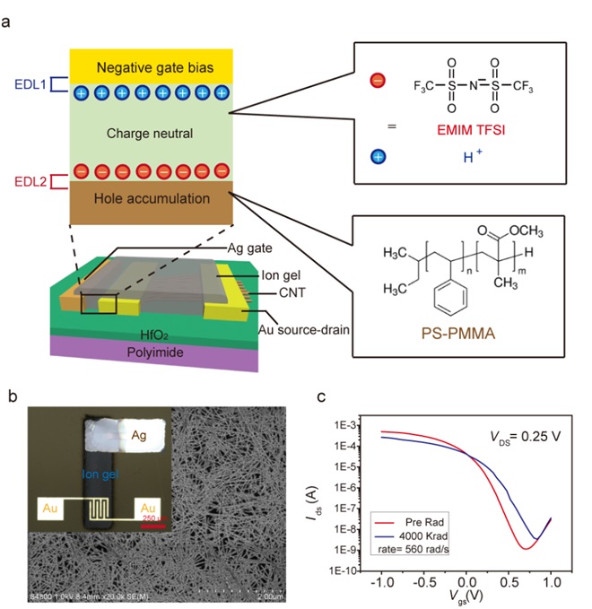 图1. 离子胶碳纳米管抗辐照晶体管