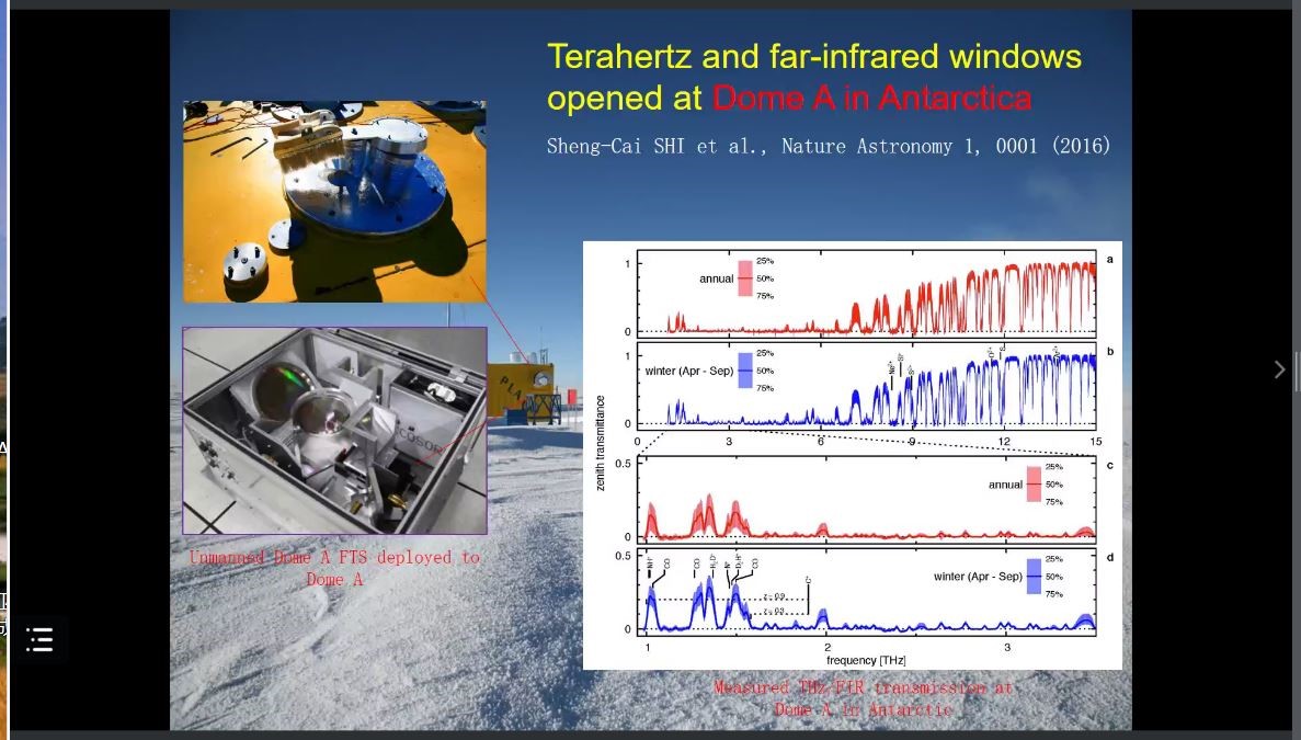 最后,史院士向我们介绍了我国规划建设的太赫兹望远镜情况,分别为南极冰穹A太赫兹望远镜和青藏高原15米/60米亚毫米波望远镜。