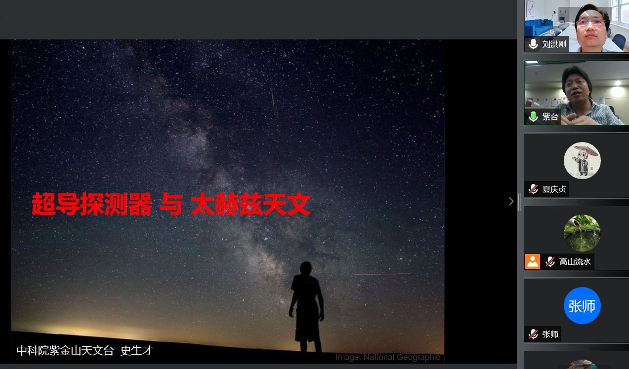 前沿学术论坛第29期通过网络顺利举行。本期论坛邀请到中国科学院紫金山天文台研究员、中国科学院射电天文重点实验室主任史生才院士做主题为“超导探测器与太赫兹天文”的学术报告,讲座由六合彩开奖号码