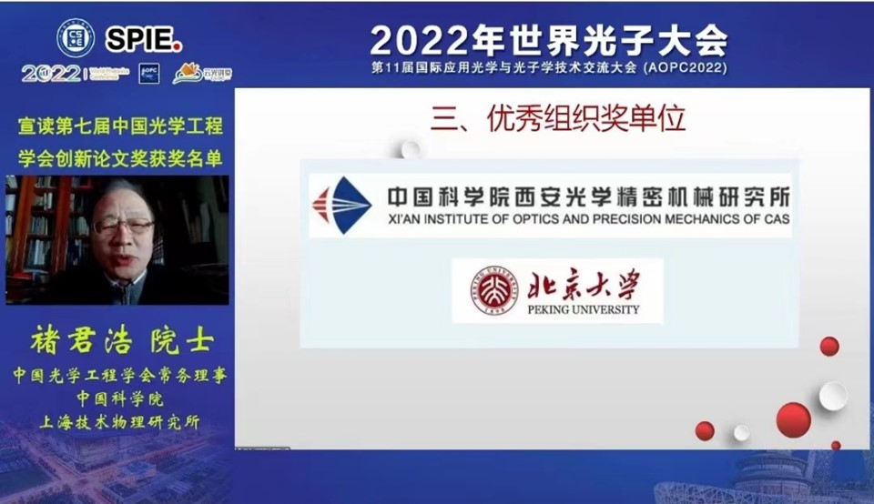 第七届中国光学工程学会创新论文优秀组织奖线上颁奖现场