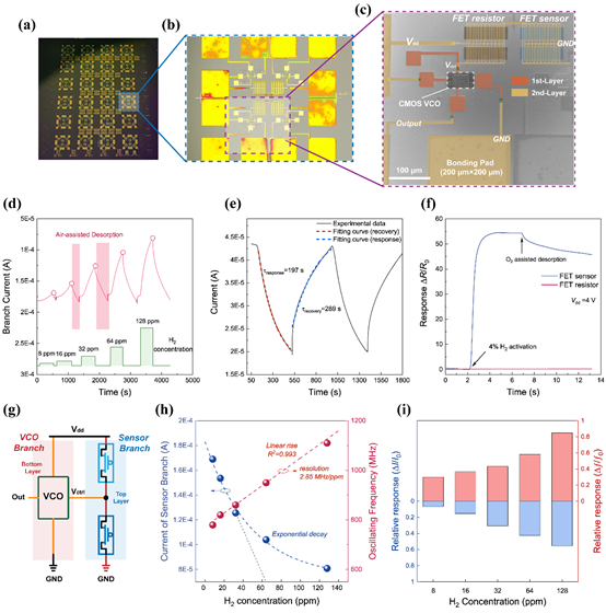4:单片三维集成氢气探测系统的表征与实际测试性能