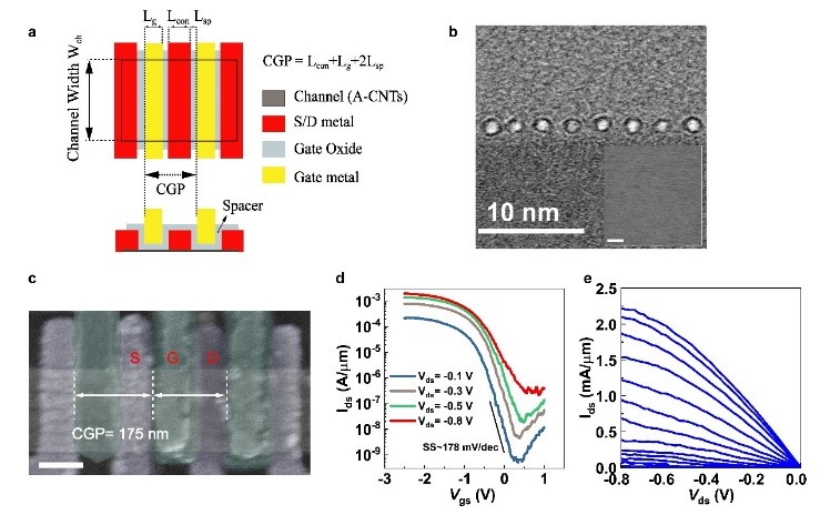 相关研究成果以题为“微缩阵列碳纳米管晶体管至亚10 nm节点”(Scaling aligned carbon nanotube transistors to a sub-10 nm node)的论文,于7月17日在线发表于《Nature Electronics》(//www.nature.com/articles/s41928-023-00983-3)。北京大学前沿交叉学科研究院2018级博士研究生林艳霞和六合彩开奖号码