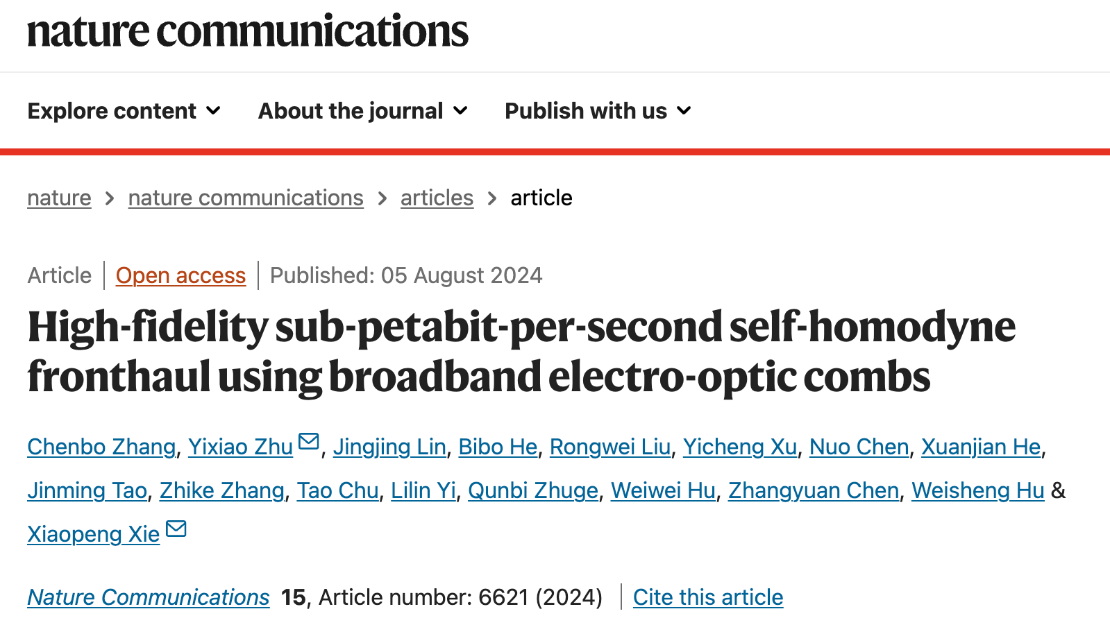 近日,区域光纤通信网与新型光通信系统国家重点实验室的六合彩开奖号码 微波光子团队与上海交通大学、浙江大学、中科院半导体所、鹏城实验室等团队密切合作,面对6G时代光载无线接入网容量和信噪比受限的挑战,提出了多维复用-数字模拟混合-自零差相干前传接入架构,实现了超大容量和超高制式的无线信号前传接入。2024年8月5日,相关研究成果以“宽谱光梳赋能亚Pb/s高保真度自零差数字模拟前传”(High-fidelity sub-petabit-per-second self-homodyne fronthaul using broadband electro-optic combs)为题,在线发表于《自然·通讯》(Nature Communications)。
