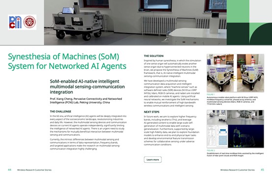 程翔教授团队成果“面向网联具身智能体的机器联觉系统”被美国国家仪器有限公司(NI)2025年度全球用户案例手册收录,如图1所示。该案例手册在全球范围内精选了来自北美、欧洲、亚太地区顶尖高校与科研院所的23项创新原型系统,涵盖面向B5G/6G的通信感知融合、通信智能融合、毫米波/太赫兹无线通信等关键技术领域,代表未来无线通信网络前沿研究方向。