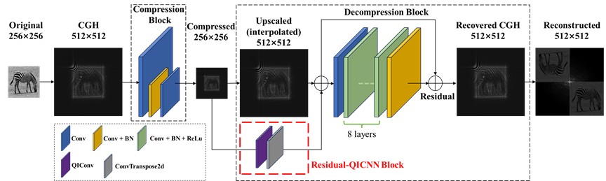 图1 基于遗传算法优化量子启发式卷积神经网络压缩传输计算全息图的方案图