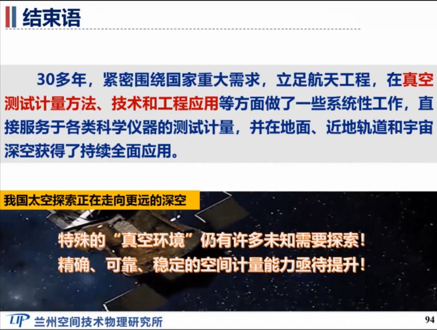 李得天教授重点介绍我国的真空测试与计量领域主要面临着四个难题以及他的研究团队针对这些难题所取得的研究成果。首先是真空中性气体计量体系不完整的问题,主要包括超高真空本底无法稳定以及难以测量标准气体流量下限等。其次是缺少真空等离子体束流的测试手段,难以精确测量推力,精确控制比冲和维持动态高真空环境等。再次是无法测量复杂真空诱导的充放电效应,这种效应对于卫星的安全运行和宇航员的生命安全至关重要。最后一个难题是迫切需要发展空间原位测试计量技术,这一技术是测量月球、火星等表面尘埃、气体成分的重要基础。针对我国真空计量技术领域面临的难题,李教授的团队经过长期的钻研和创新,克服了一个又一个的难题,取得了一系列的技术突破并且得到了广泛应用。