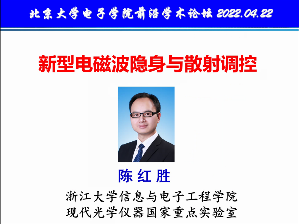 讲座伊始,陈红胜教授由电磁散射理论、超材料基础理论及其应用引入本次报告的主要内容:散射抑制、散射增强和散射智能三个方面,随后展开了精彩报告。