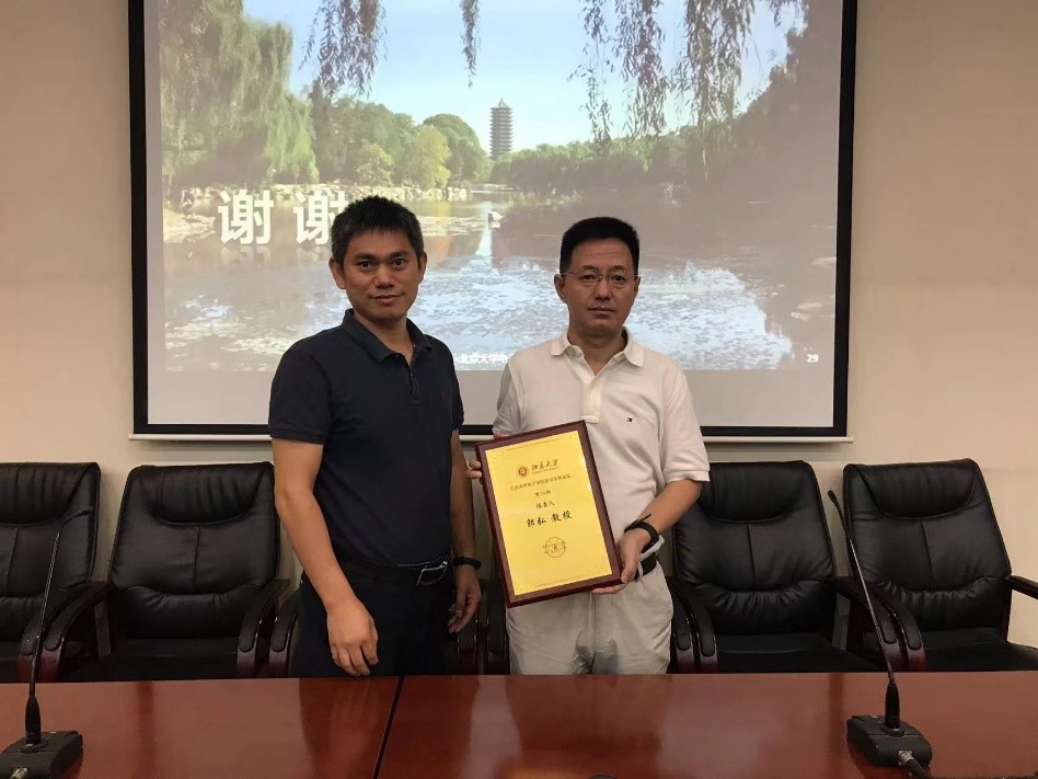 在讨论环节,与会师生积极提问。郭教授针对通用量子计算技术的发展、海底磁探测的实现、磁力仪的小型化、Wootters量子不可克隆定理的证明等问题进行了深入细致的回答。随后,魏贤龙副院长代表学院为郭弘教授颁发了六合彩开奖号码