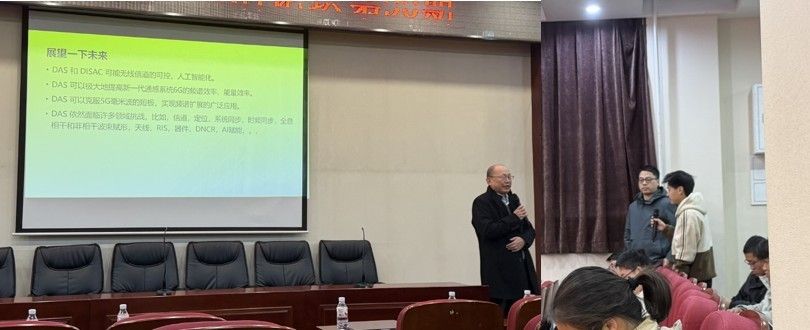 在互动环节,师生围绕近场通信与NFC技术的联系、天线阵列抗混叠防栅瓣设计细节等话题踊跃提问,应志农教授逐一回应。结合最新研究,应教授就科研选题、方法论与产学合作提出建议,指出未来6G的前沿研究方向。整场讲座长达两小时,内容翔实、见解深刻,现场交流气氛热烈,学术氛围十分活跃,让同学们对6G分布式天线体系的认识更加系统、方向更为明确。报告内容丰富、深入浅出,激发了大家对6G通信技术研究的浓厚兴趣,讲座在热烈掌声中圆满结束。
